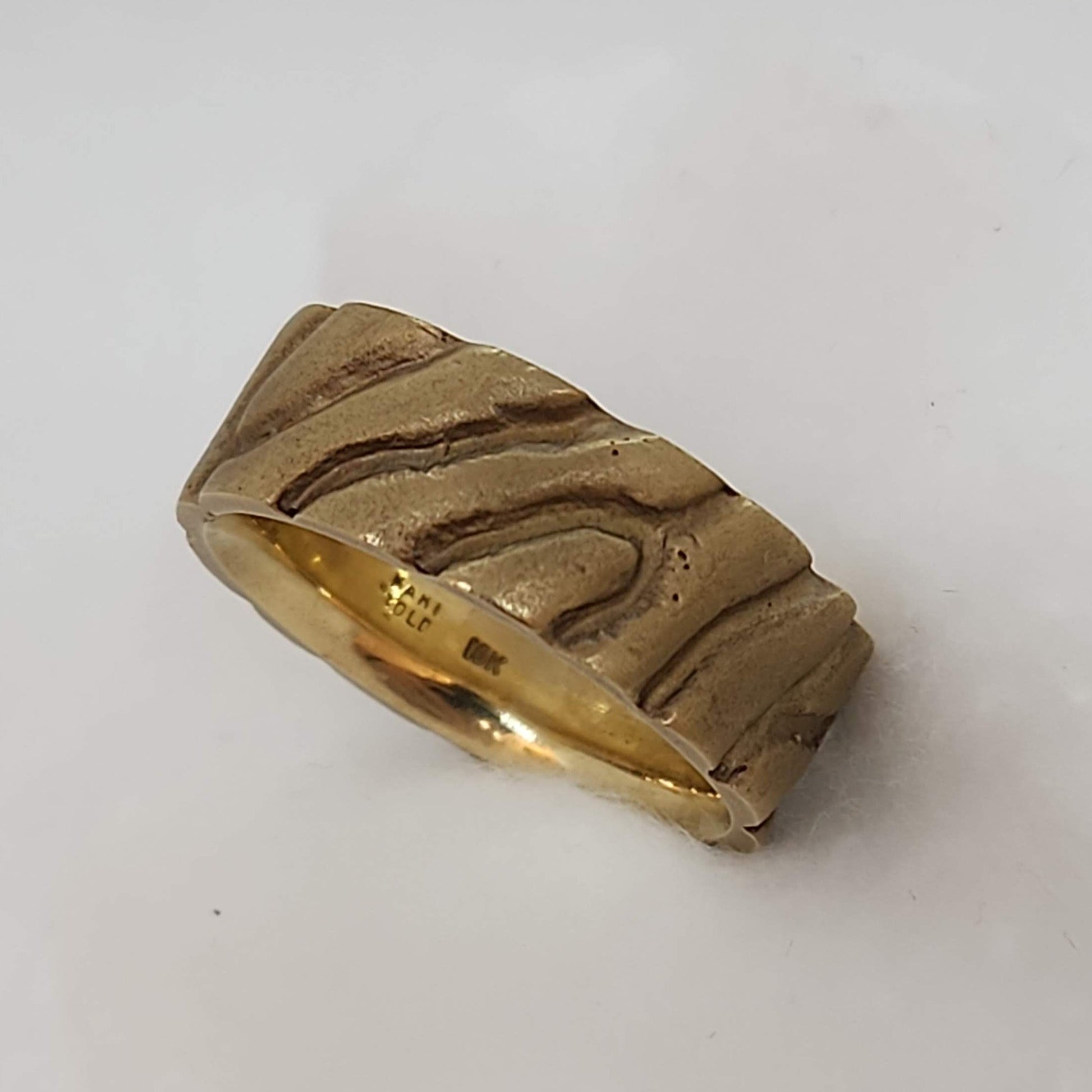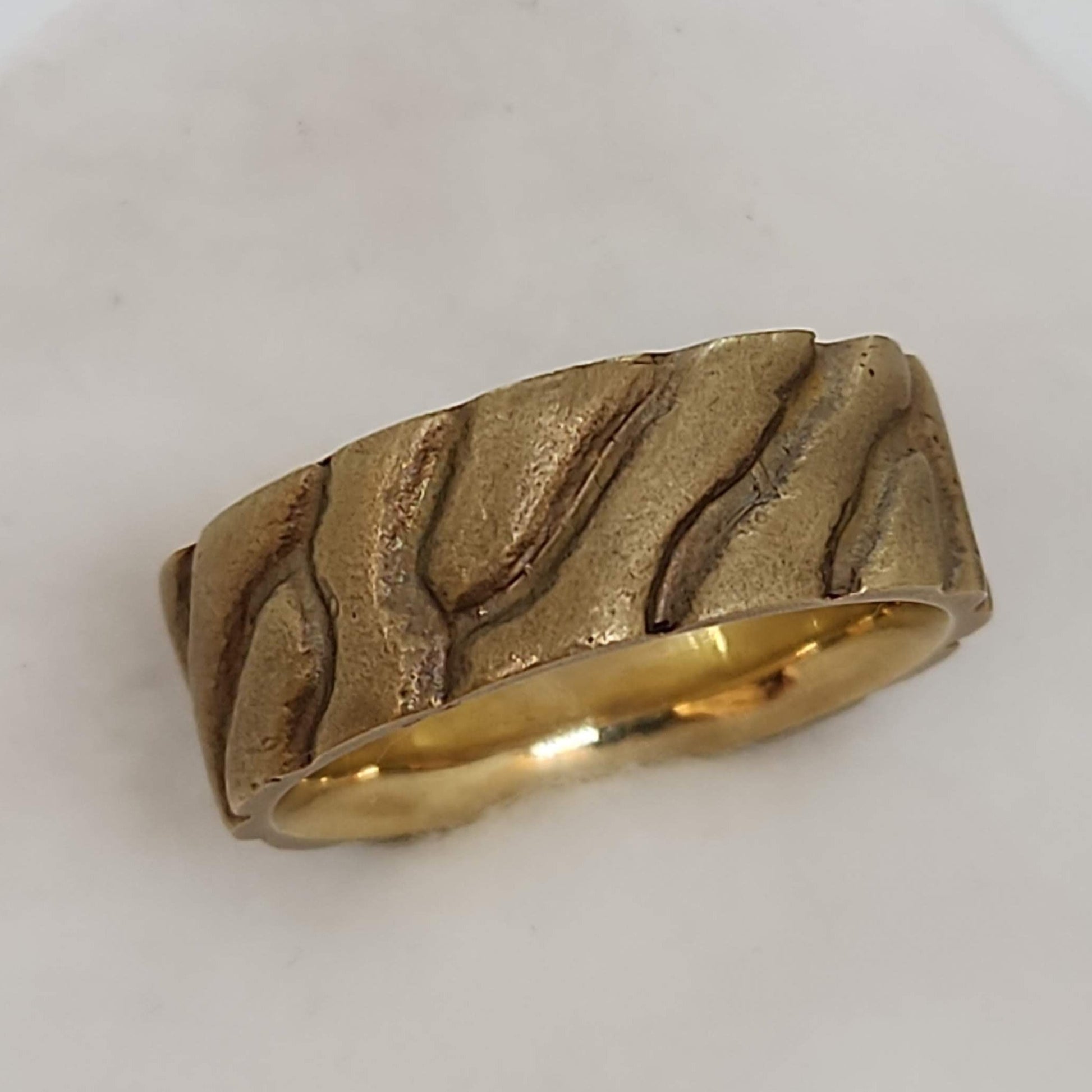 Windswept and rippled, sand dunes are some of the most magical places on the planet. Just a simple shift in wind direction can transform these majestic mountains into an entirely different landscape from one day to the next. Designed and made by Marigold Design Studio, this band has a sandblasted texture that is showcased beautifully against the highly polished interior. Complete with a comfort fit, perfect for everyday wear.