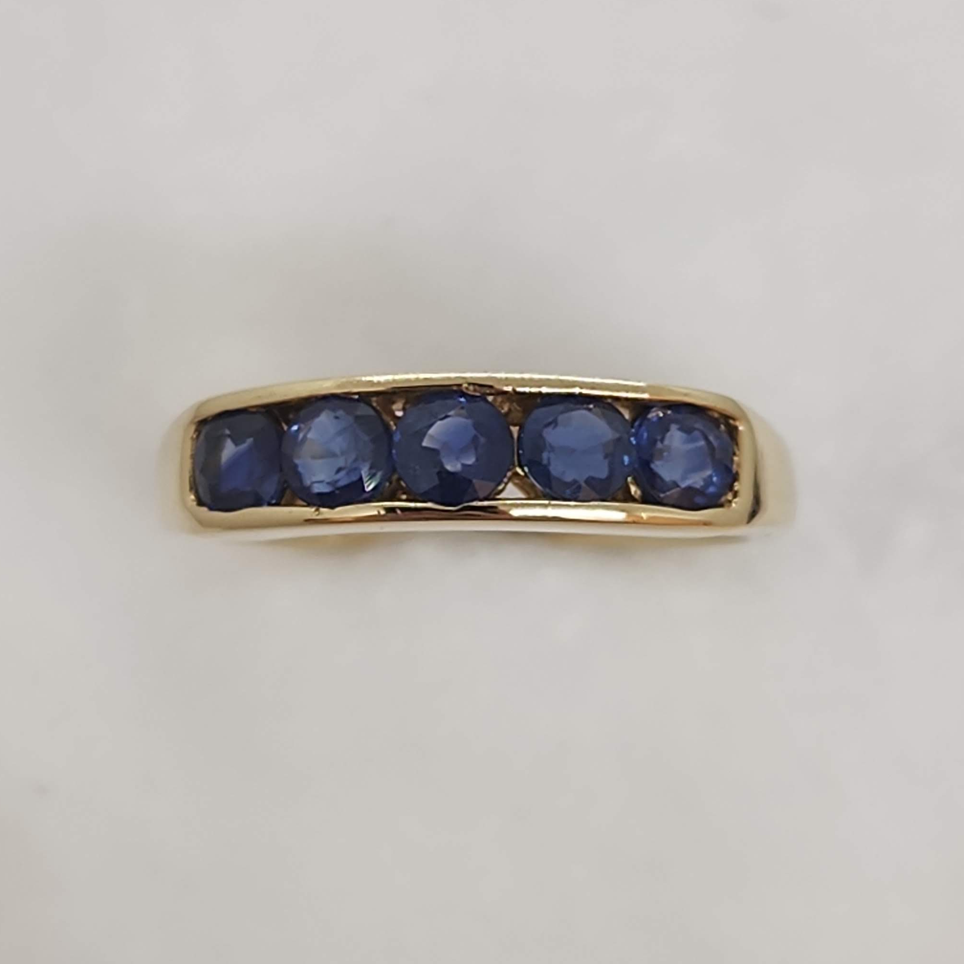 Blue is a neutral in our books - this will go with any outfit! These sapphires are a soft cornflower blue. This band would look awesome stacked against a diamond band or any other coloured stone band. Always a lovely extra band to have for a September birthday or a sapphire lover.