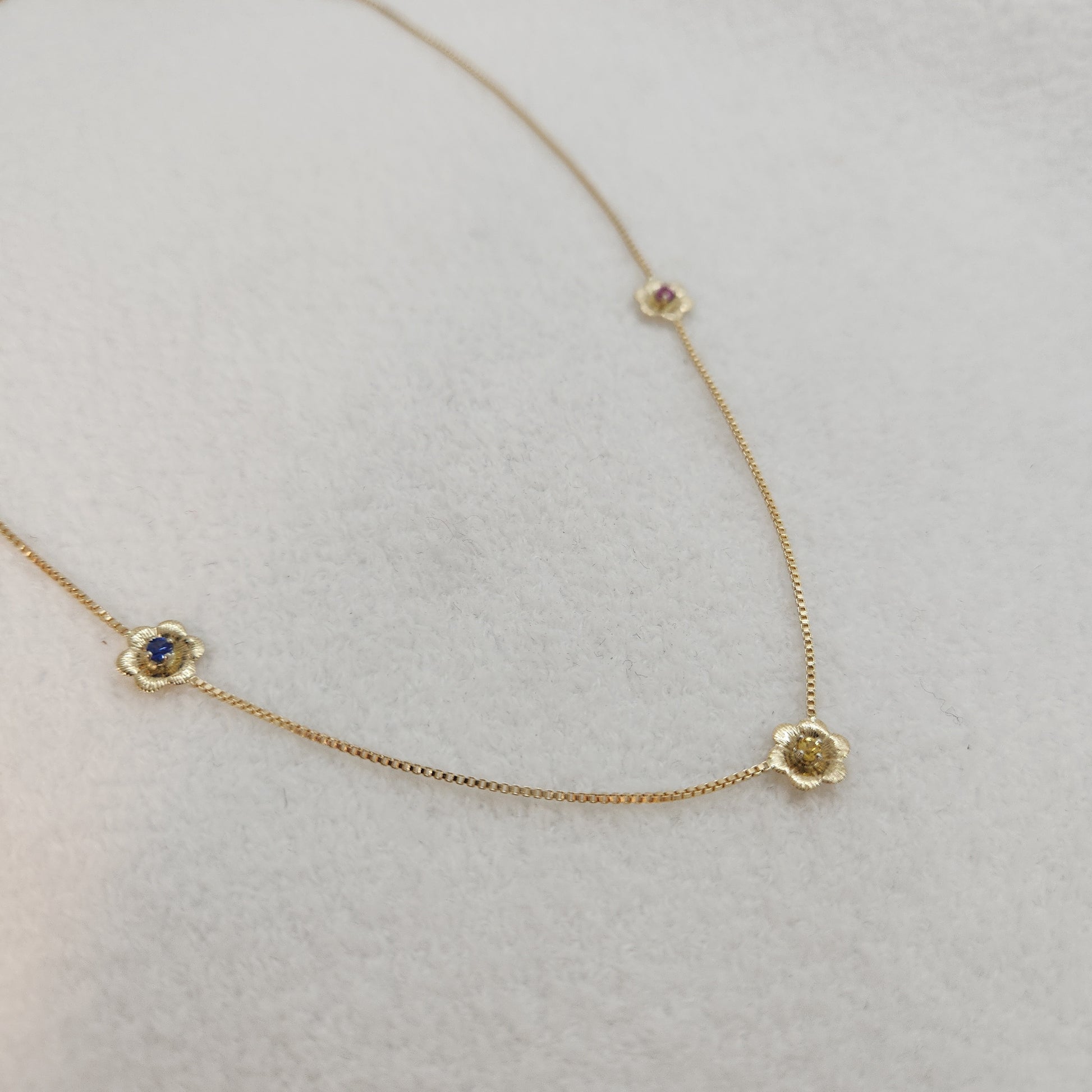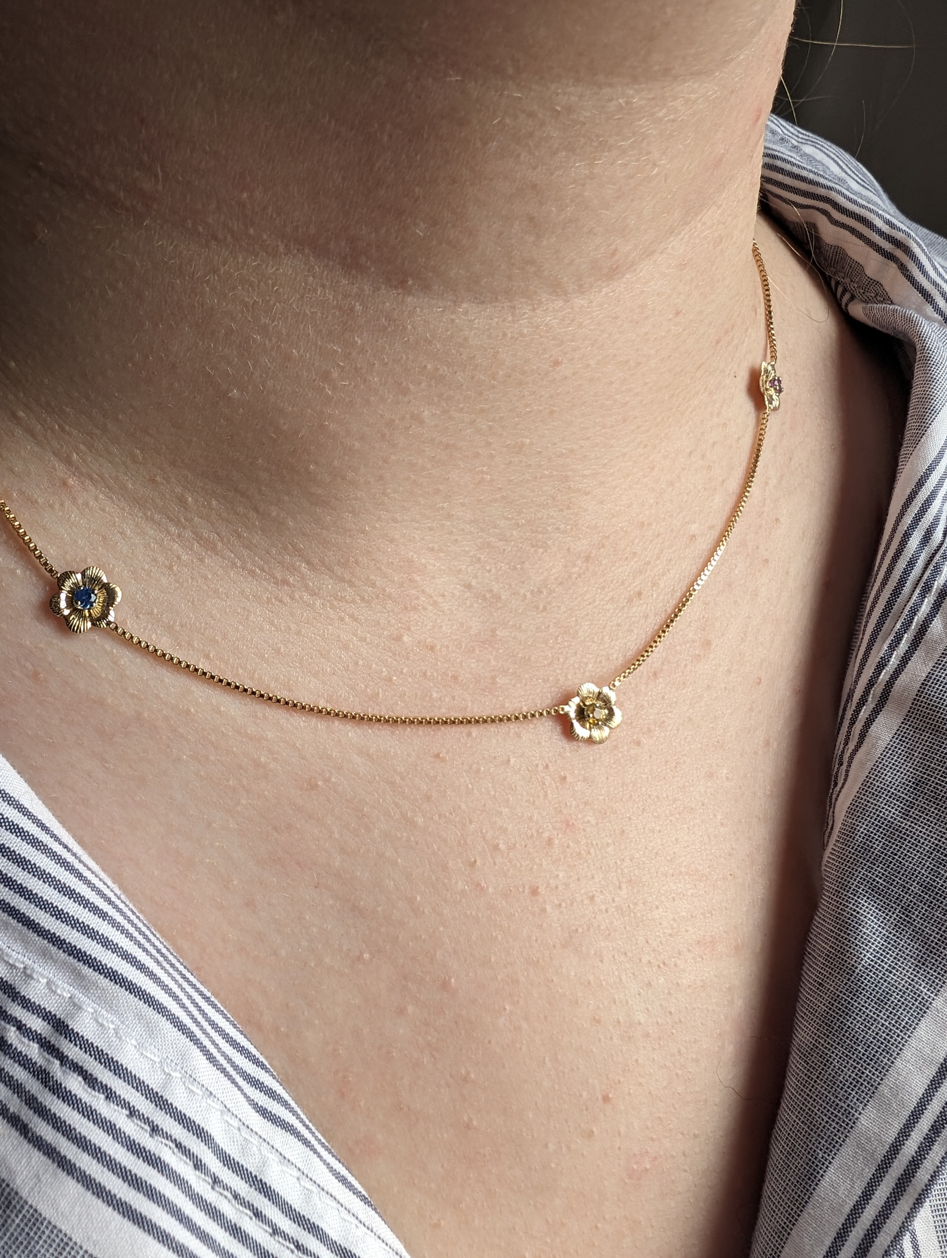 Sapphires 3 ways! Cornflower blue, Canary yellow and Petal pink. Each in their own flower.