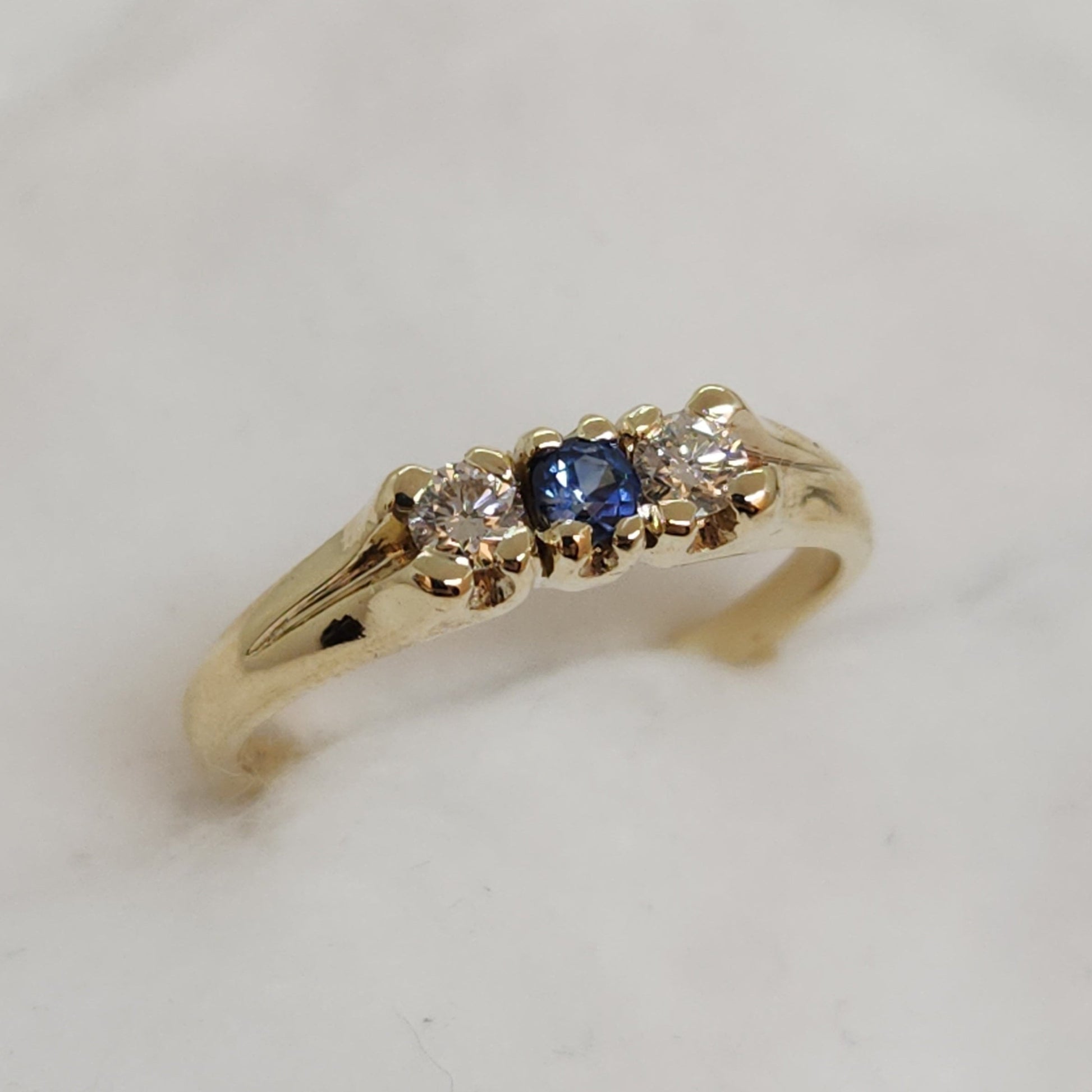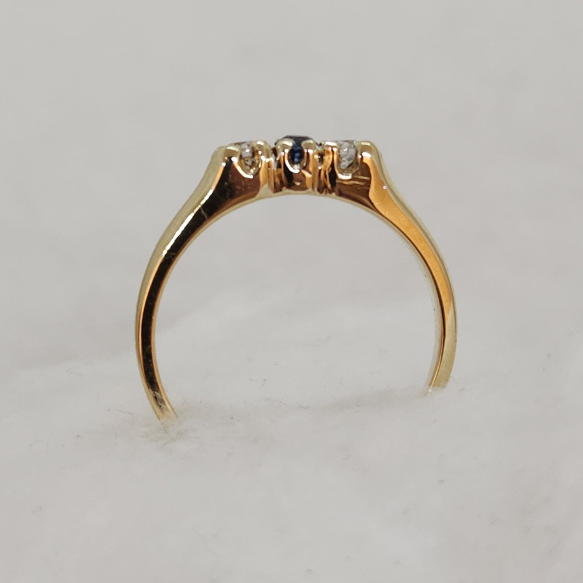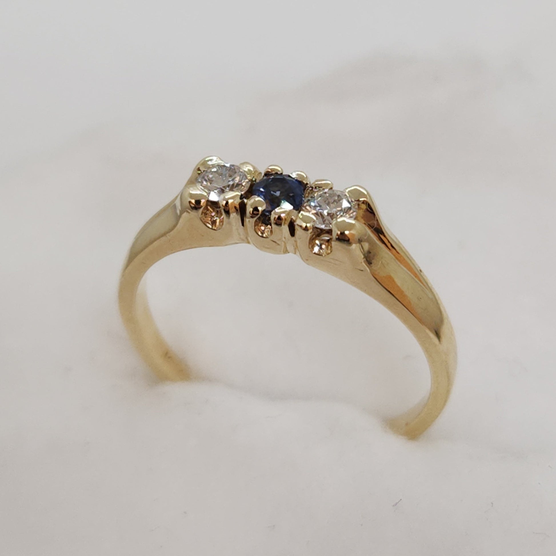 Diamonds and sapphires, an enchanted combination. This sapphire is a beautiful royal blue shade with two high quality diamonds on either side. This ring can be worn on it's own or part of a ring stack.