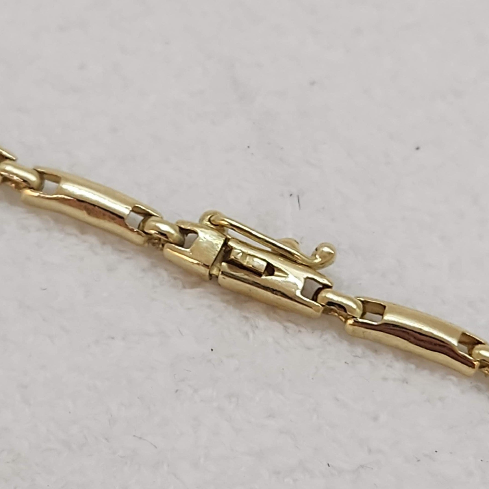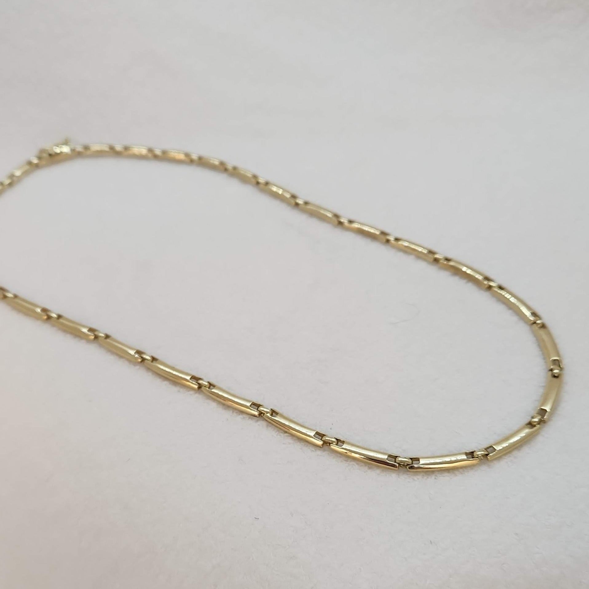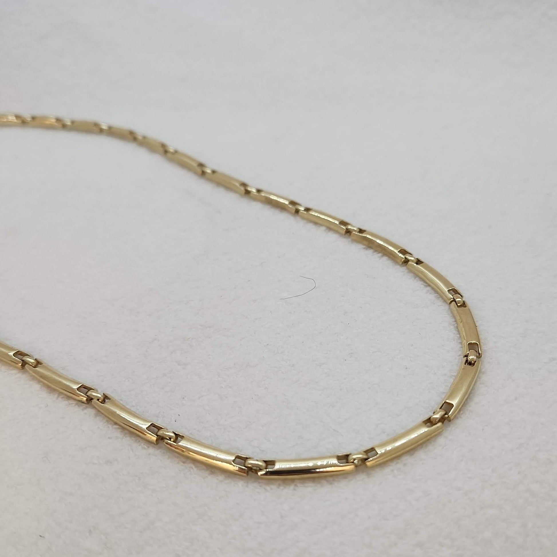 Whomever designed these links, designed this with a necklace in mind. Each link has a slight arc, allowing it to flow gracefully in a soft curve. We spent some time wearing this piece, seeing how it moved as we went about our day. We admired how the flatter links reflect the light as you move. The links are graduated with longer links at the bottom, and smaller links behind the neck. Such a flattering length!