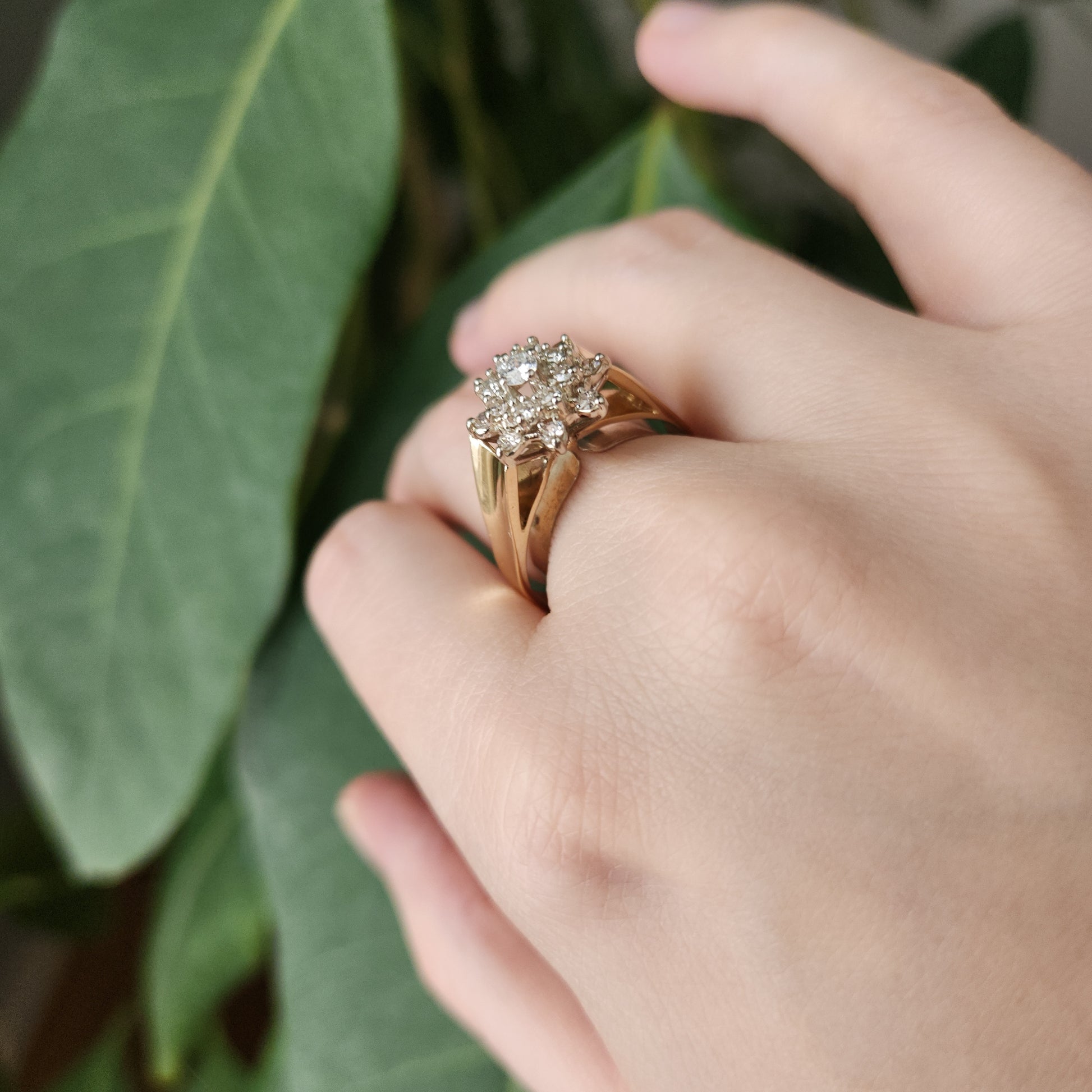 This diamond cluster is heaven sent! There is currently a "guard" on the inside of the ring, it's perfect if you have larger knuckles, it can be removed if you wish.