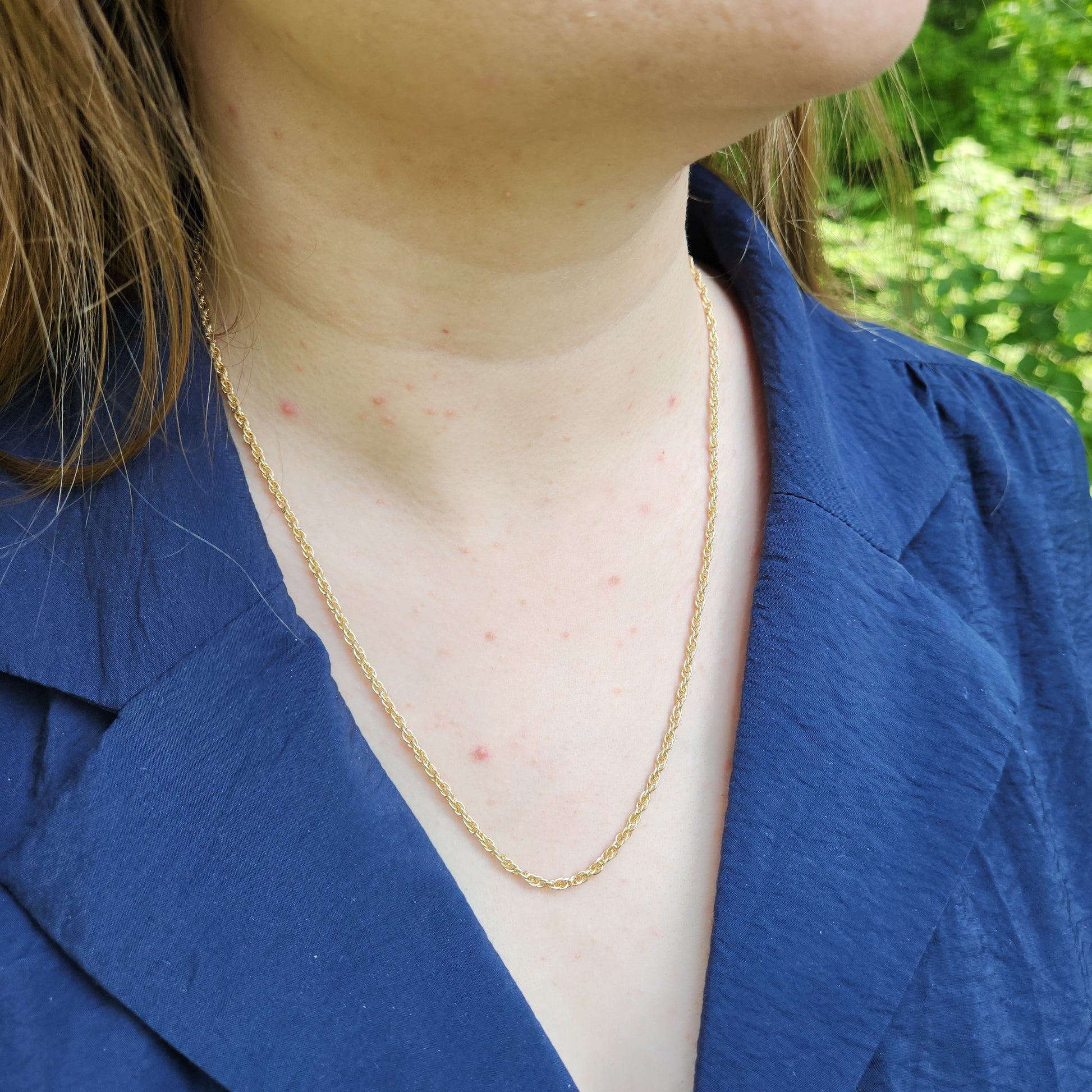 Solid rope chains like this one are known for their longevity. It's weight at 8.5 grams doesn't feel heavy to wear, but it has a substantial feel if you were to compare this to a hollow rope chain variety. This is a unisex classic vintage design....everyone should have something like this in their collection!