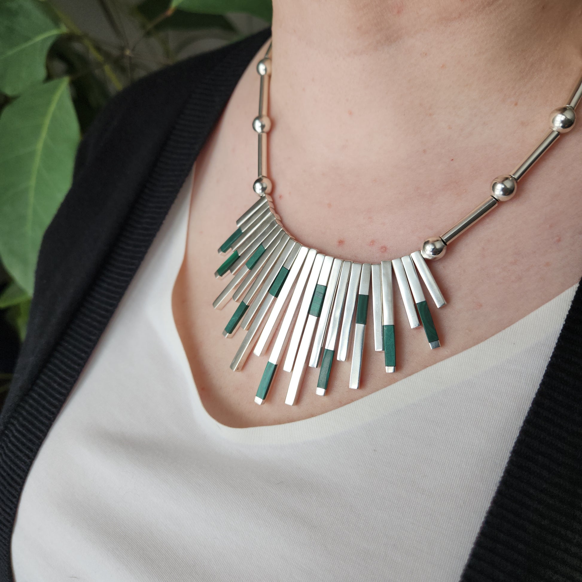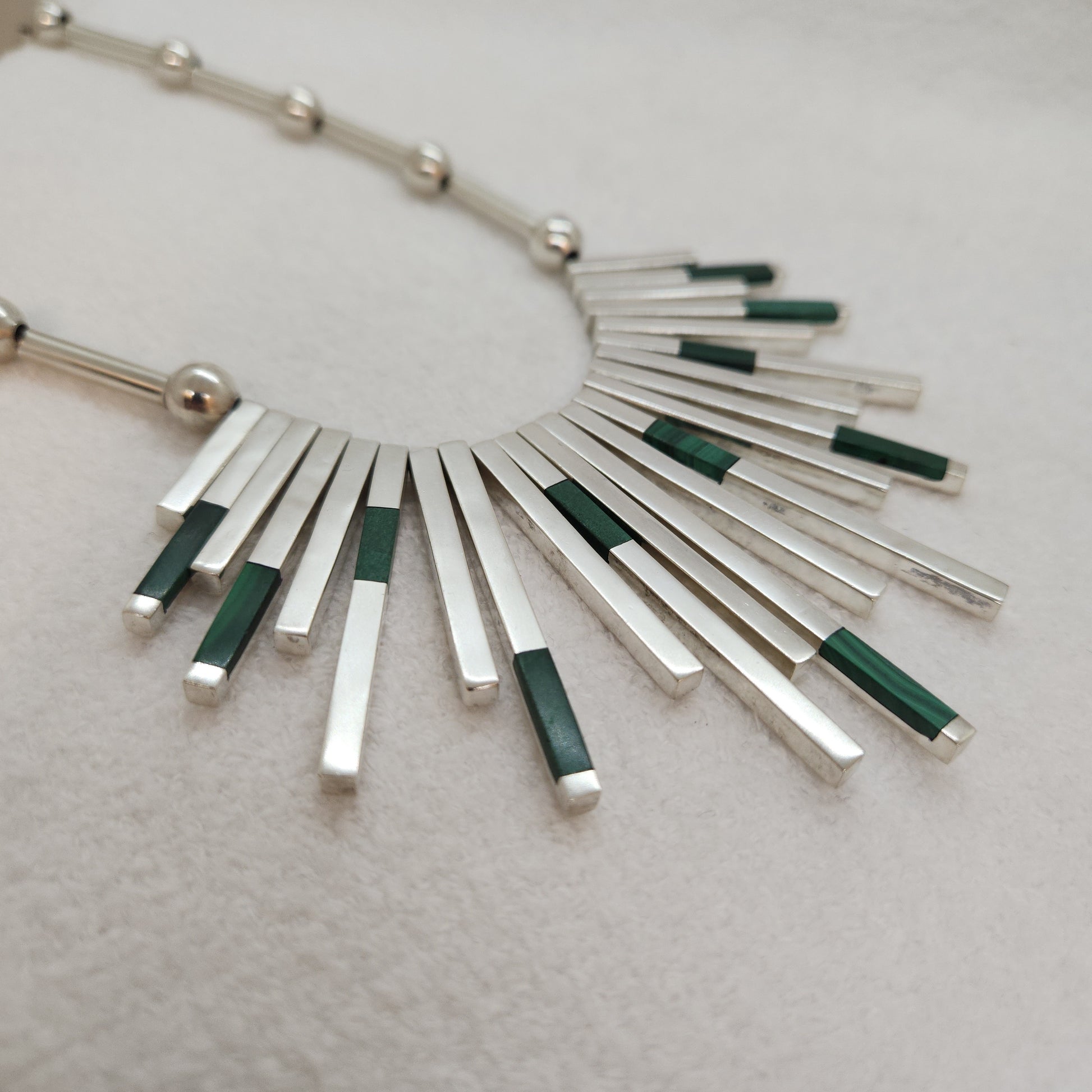 Seriously cool style! Made in Mexico, this statement piece will get all the looks. This is 118 grams of personality! Malachite stone has a rich patterned colouration in various shades of green. It is known as the "Stone of Transformation" and is used for deep energy cleaning, bringing healing and positive transformation to the wearer.