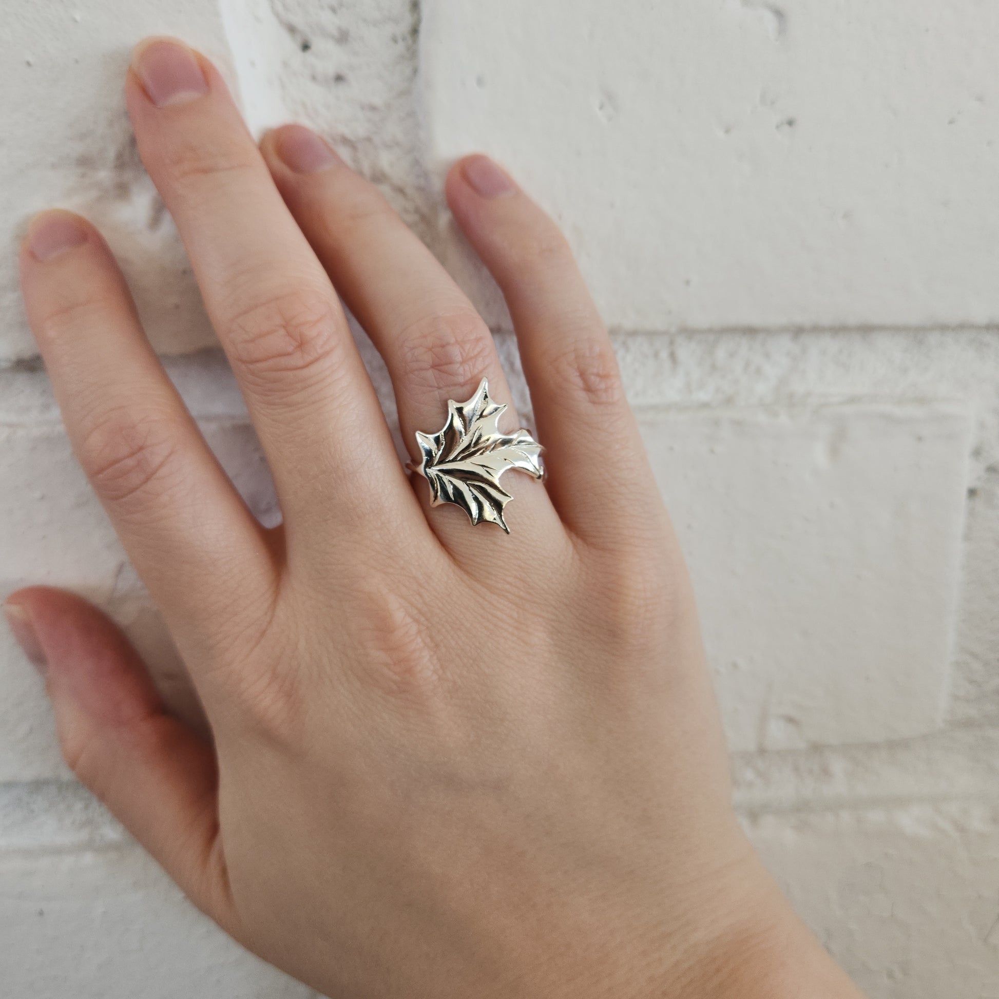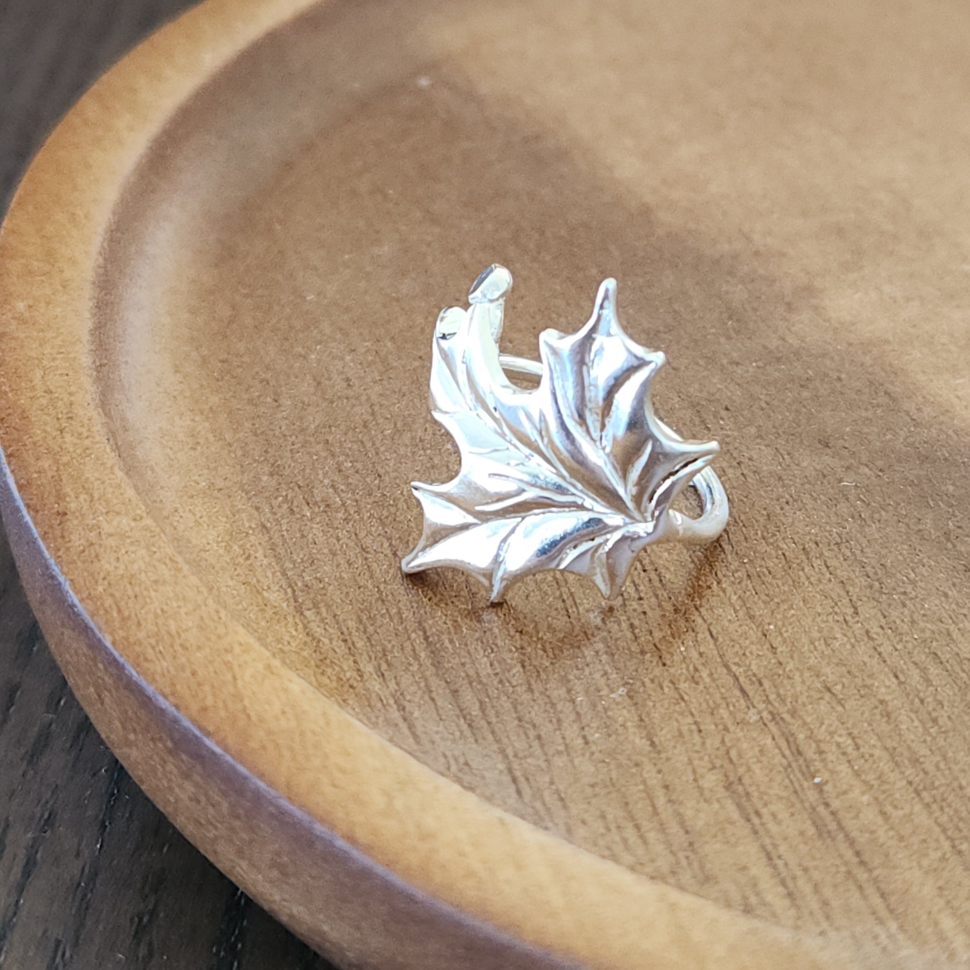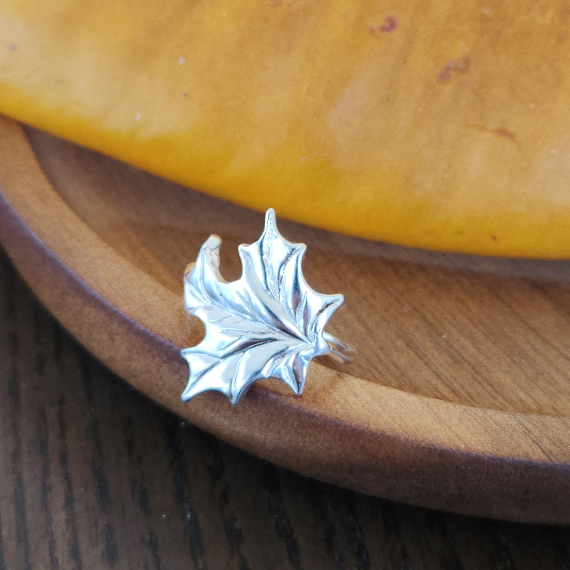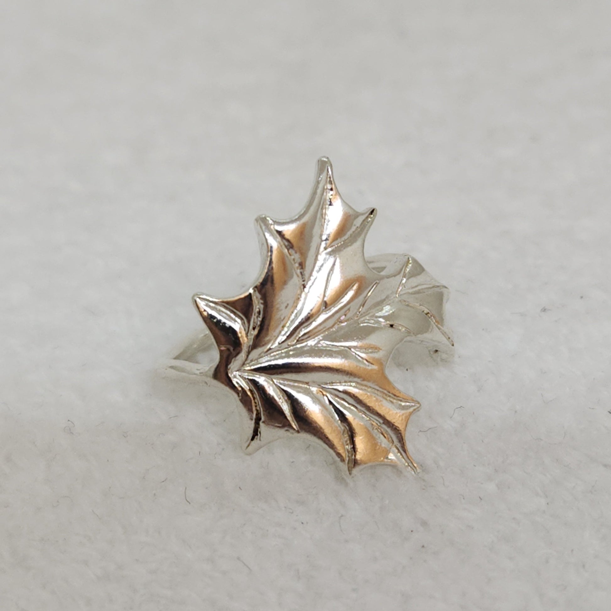 Made in the Marigold Studio, this maple leaf hugs the curve of your finger. Freeform and flowing. This one is a small size, sizing could be adjusted just a half size. See listing R1198 for a larger size.