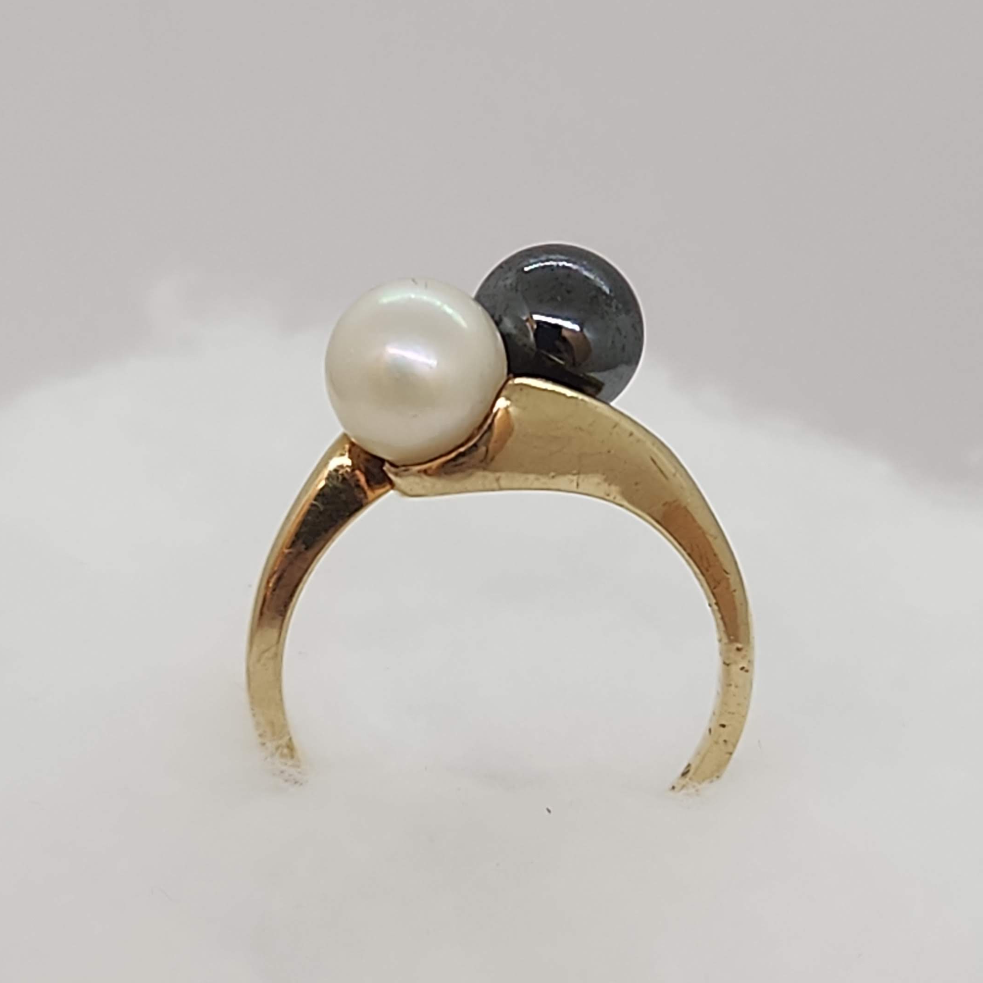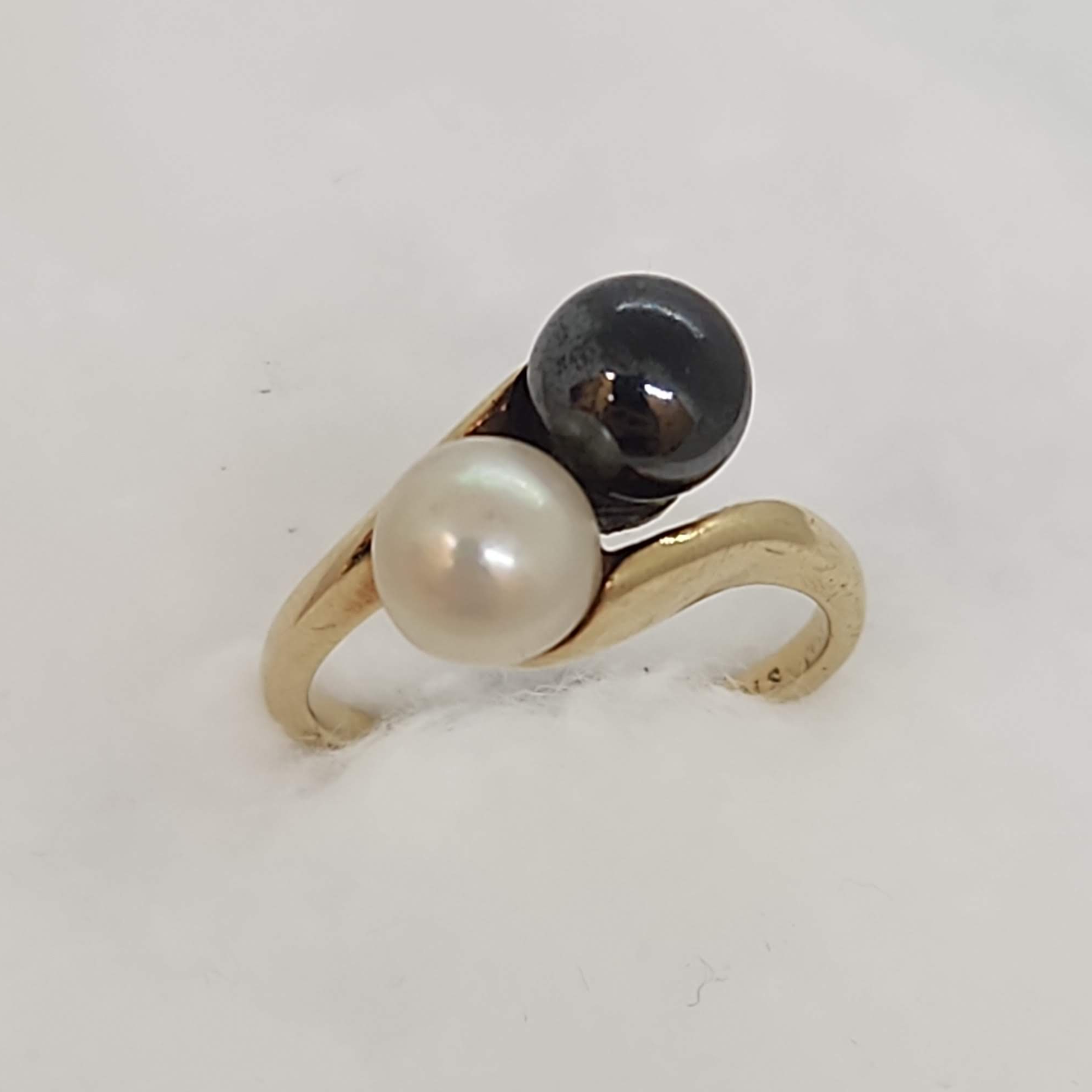 In French, "toi et moi" means "you and me." Two gems, set side by side, symbolize the union of two souls meeting. This pairing of a soft creamy white and a dark grey/black pearl is striking.
