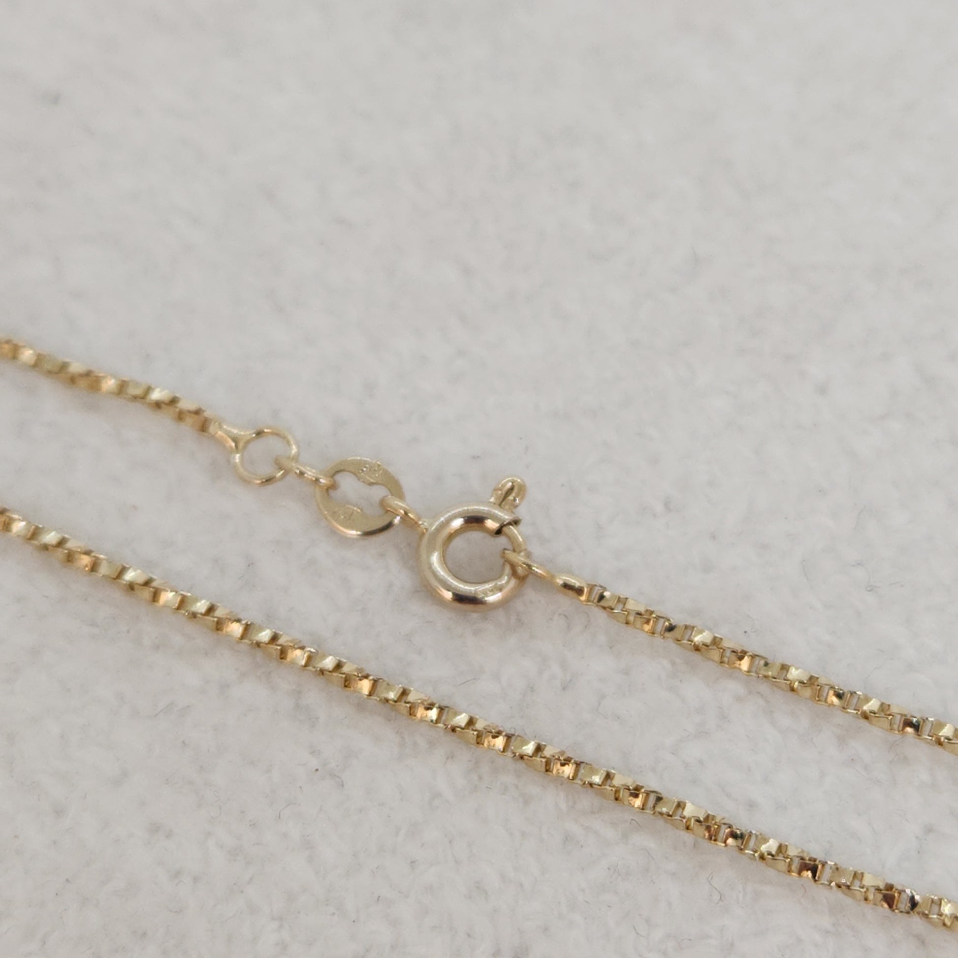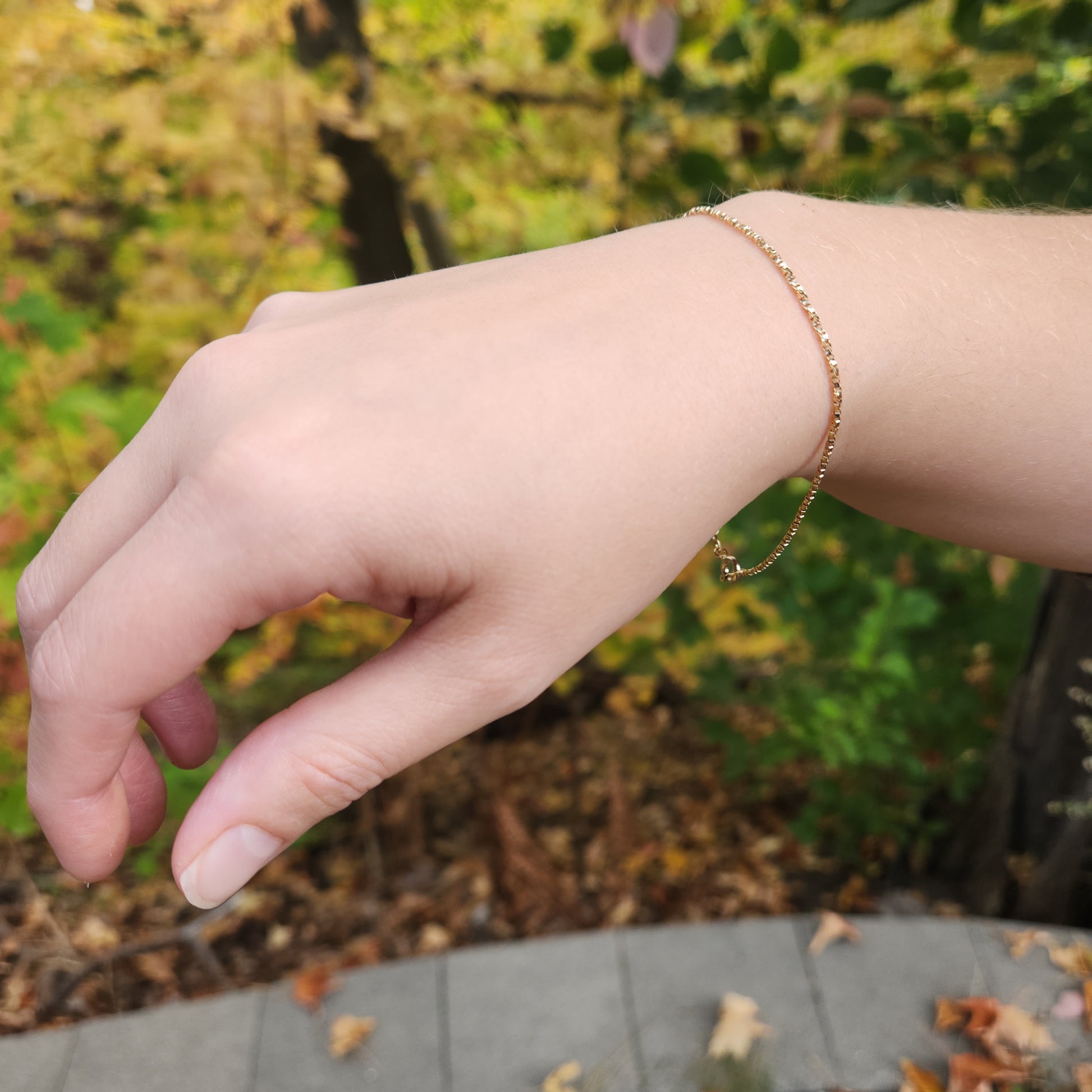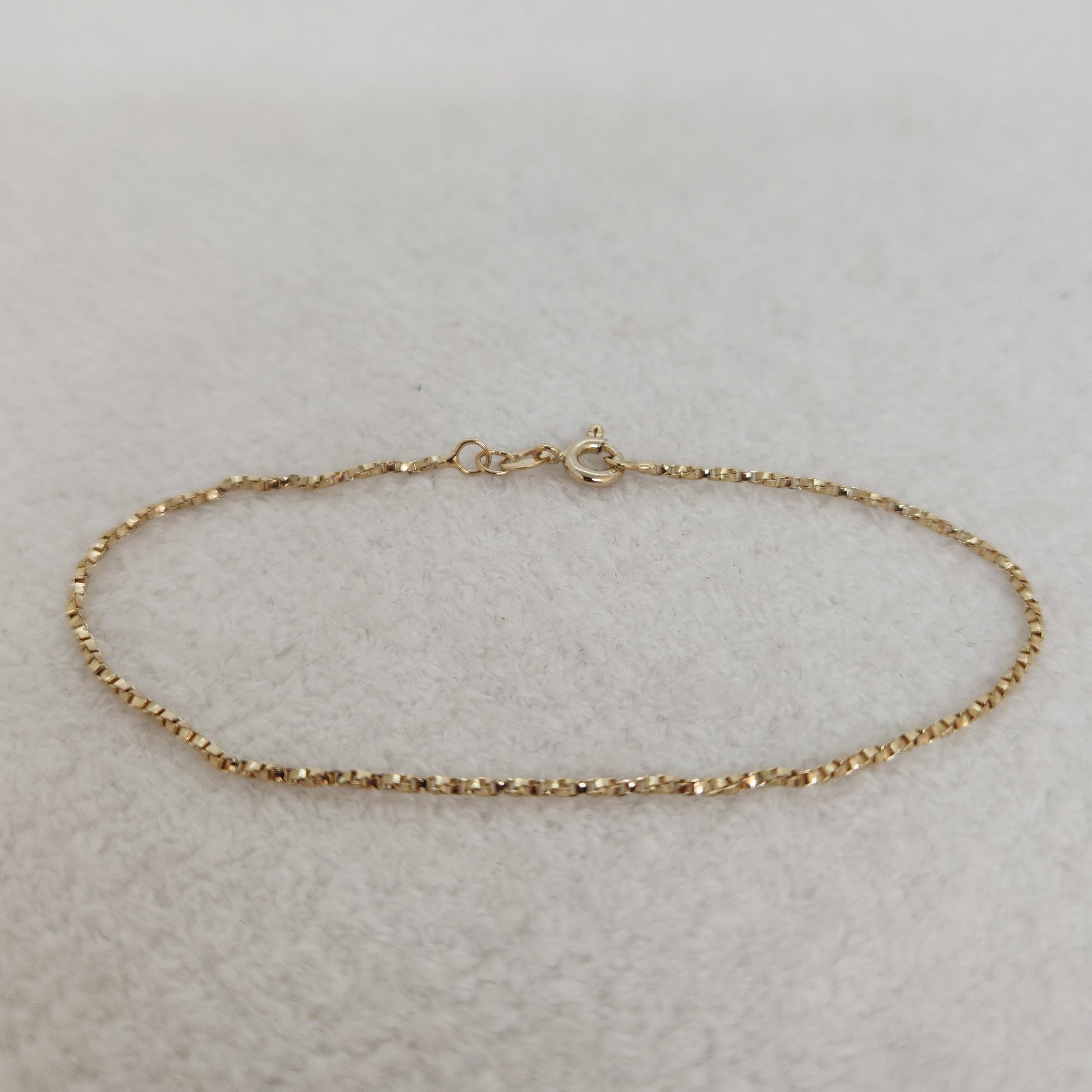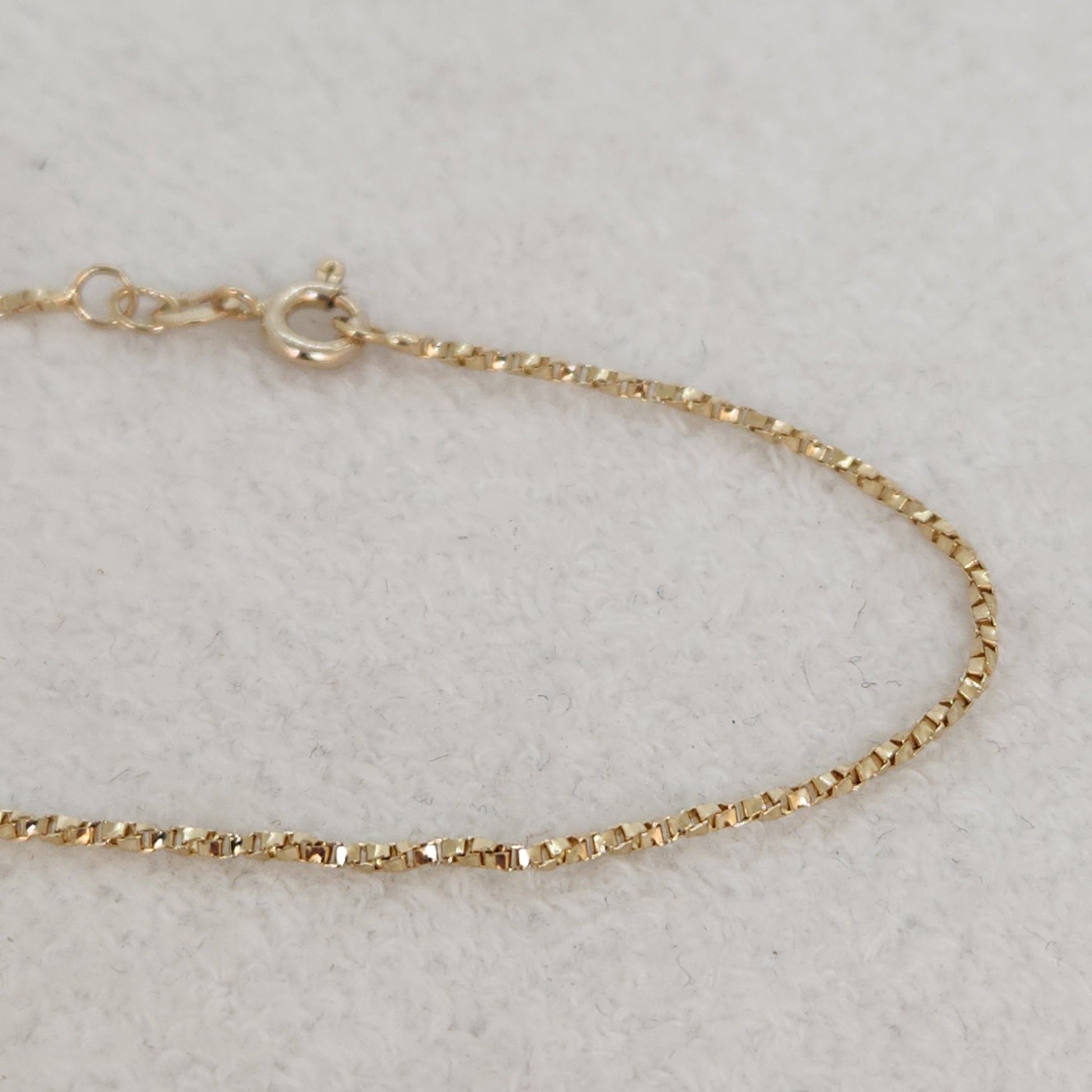 A sparkly and elegant look! This is a fun variation of a box chain, the links are rotated allowing it to catch the light and reflect it from all the angles.