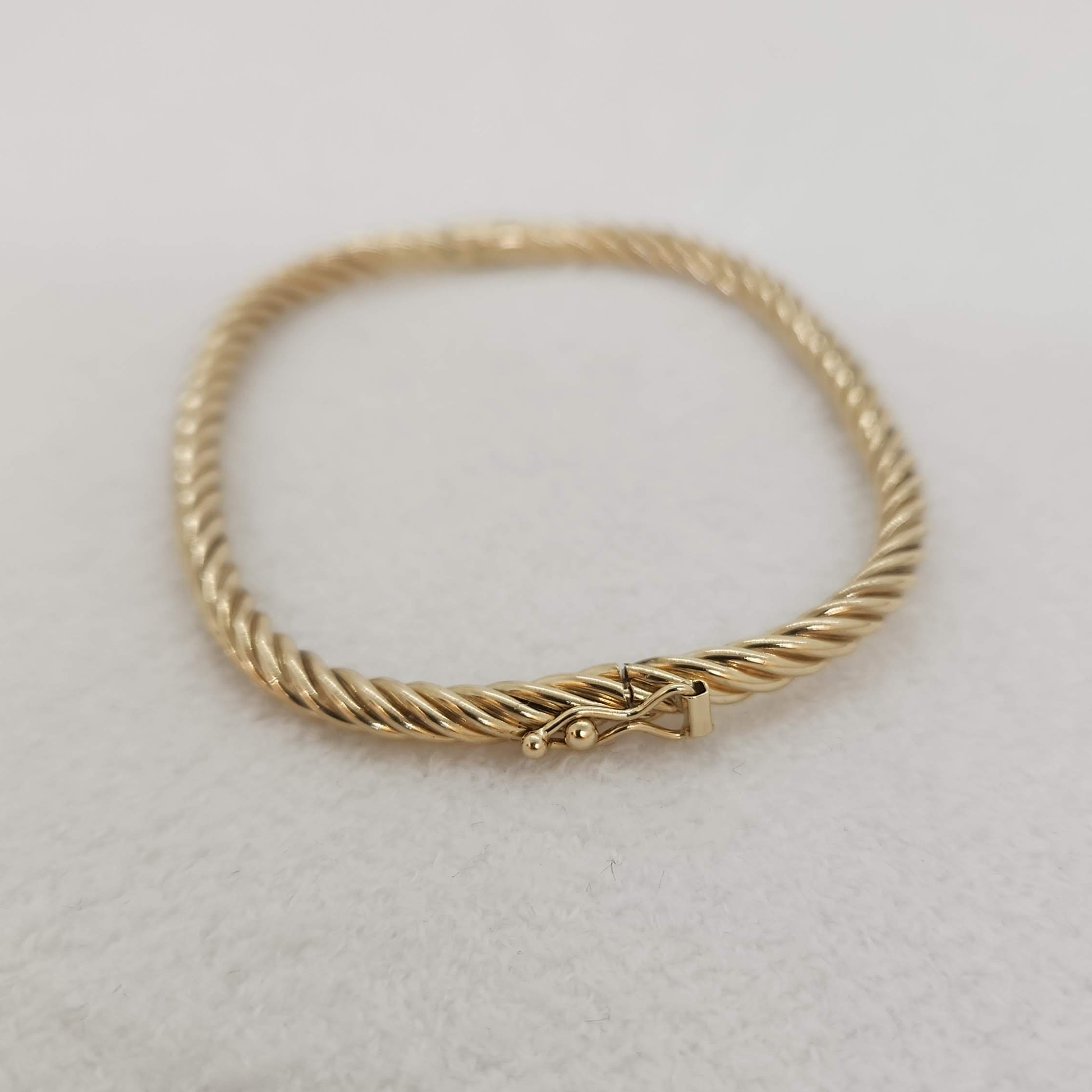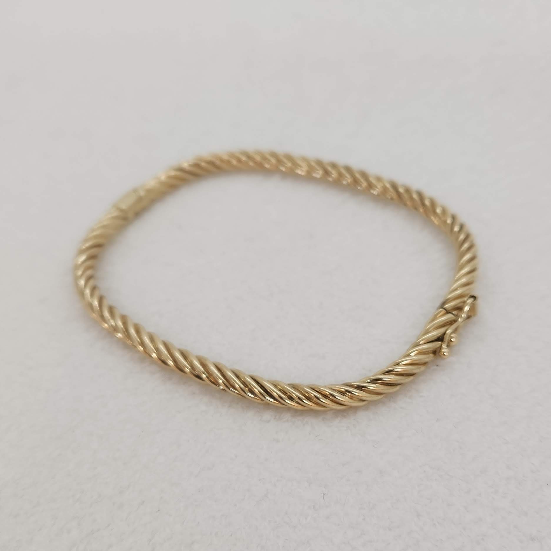 Rope chains have always been in vogue due to their timeless elegance, but have experienced a resurgence in recent years. This is a hinged bangle with a secure box catch and figure 8 safety. A very comfortable bracelet due to it's shape, a perfect item to complete any outfit or stack with other bracelets.