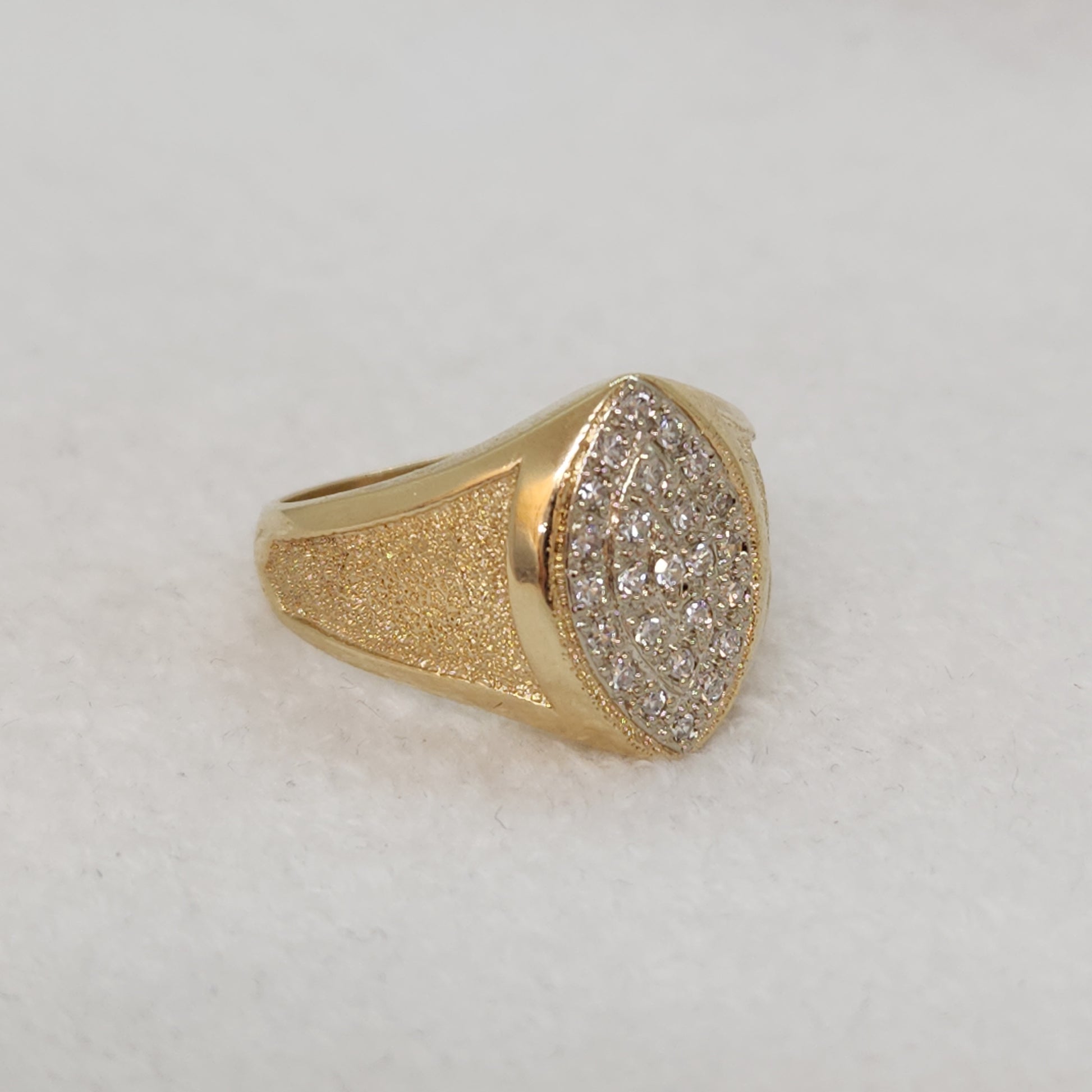Entirely unisex, this diamond signet ring has it all. Sparkling from the pave set diamonds with a sparkly texture on the sides, this ring can become your signature piece.