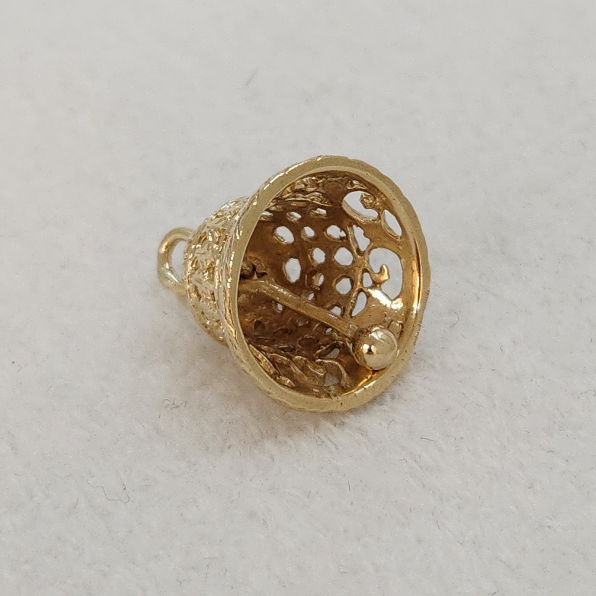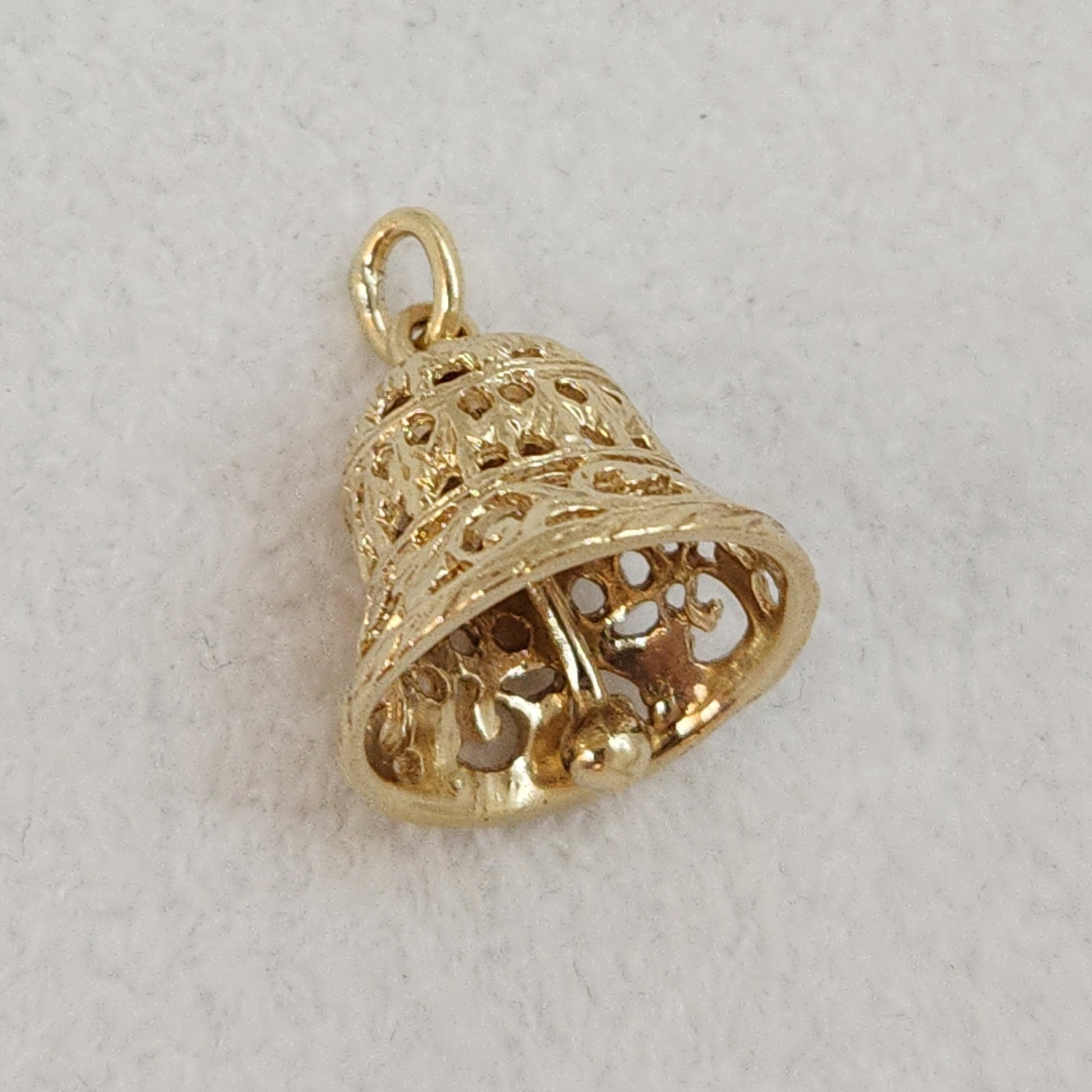 An old tradition has bells being given as tokens of affection and good fortune, so the bell wearer will know that whenever they hear their bell ring, good fortune will come and their angel is looking after them. This vintage charm has beautiful openwork, it's ring is subtle.