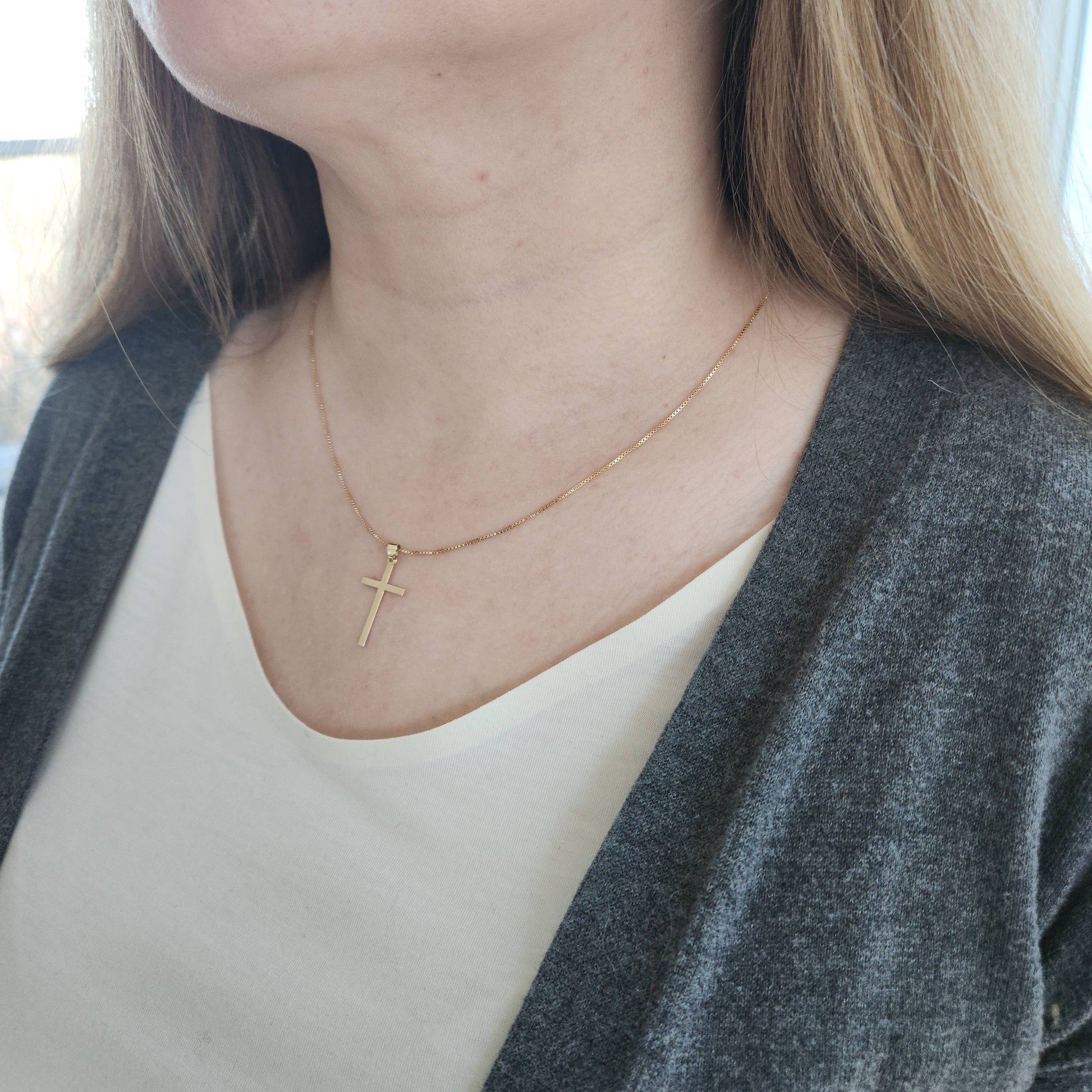 Perfect for someone who would like a sleek and minimalist cross to wear over or under clothing. Lovely, simple and understated.